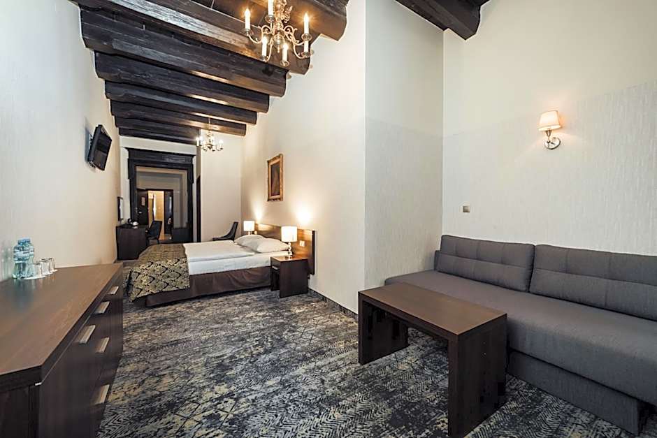 A room offering a bedroom and a living room or one, extra spacious room with historic fresco. Most have a elevator access. There is a flat-screen TV, a telephone, safety deposit box and tea/coffee making facilities. There might not be access to the elevator.